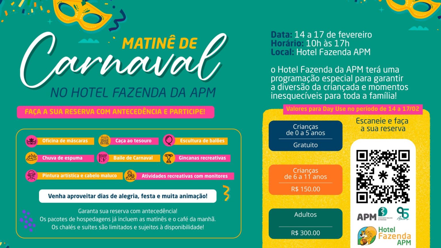 Prepare-se para viver dias de muita alegria no Matinê de Carnaval do Hotel Fazenda da APM!! Entre os dias 14 e 17 …
